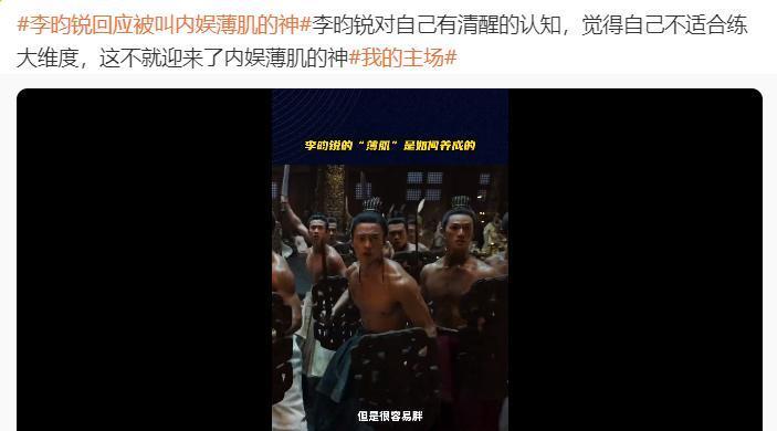 在之前的采访中,李昀锐曾表示:以前增肌的时候,练到过比较大的体重,但是很容易胖,也就是说,如果李昀锐将自己的肌肉练得很大,他的脸型也会发生变化,变得不太上镜,所以李昀锐又开始做减脂的训练。