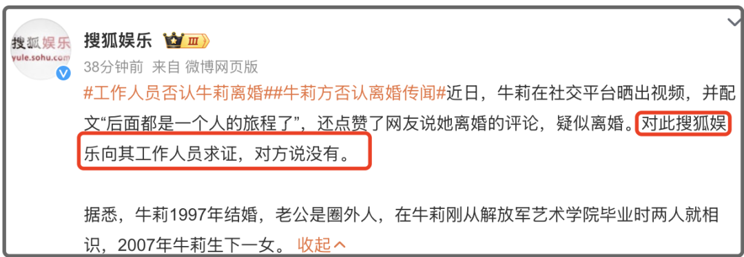 为了求证牛莉是否真的婚变,媒体还特意致电了牛莉的工作人员,结果对方否认了离婚这一说法,这么一看,是牛莉自己闹了个乌龙还是炒作呢?